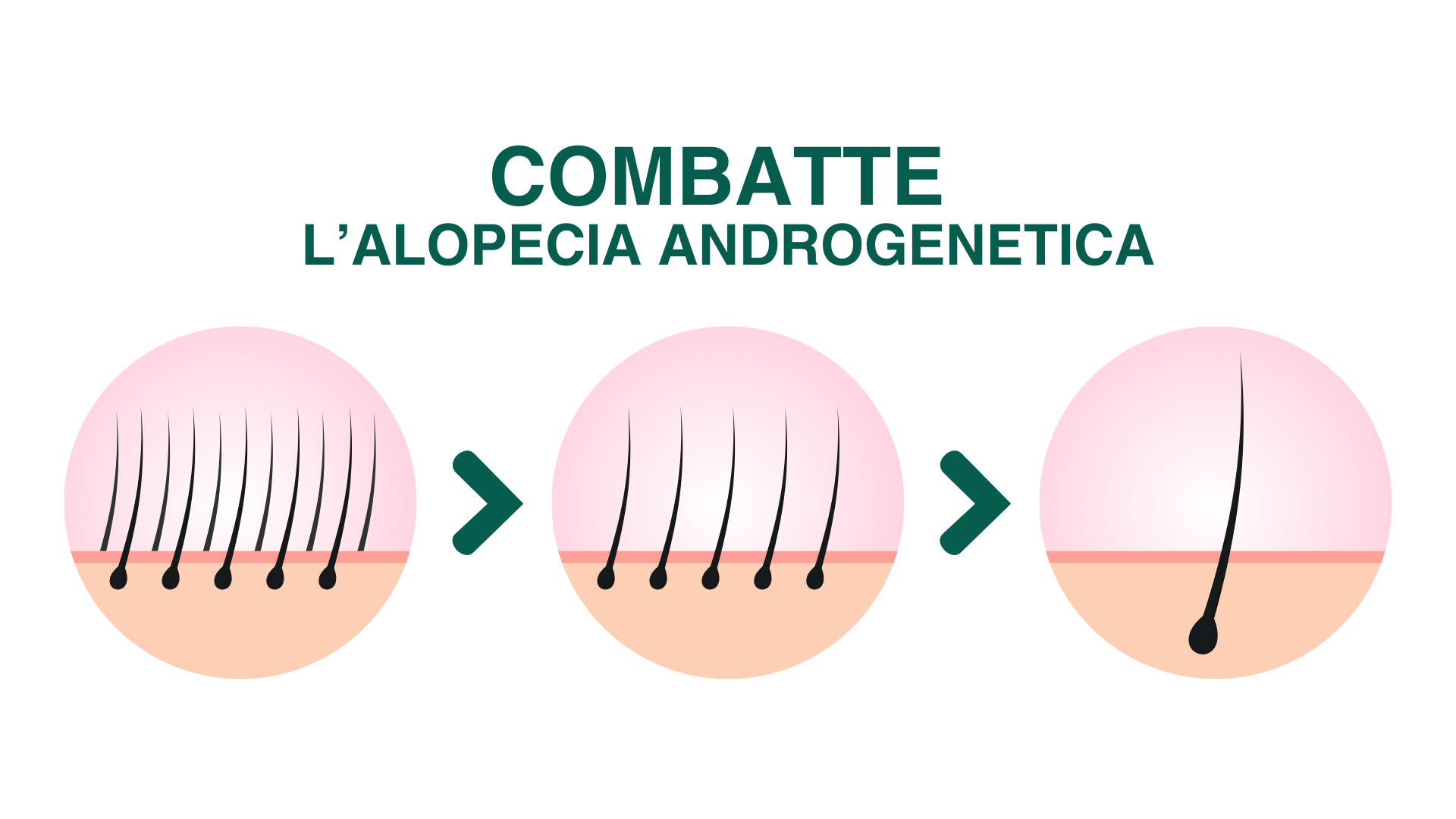 I bulbi attaccati dal DHT riducono progressivamente la fase Anagen dei capelli fino a ridurla ai minimi termini e facendo progredire la calvizie.